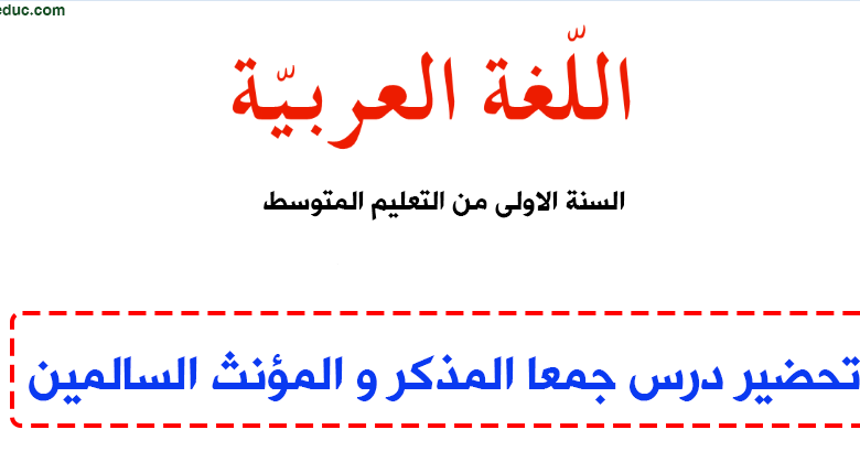 تحضير درس جمعا المذكر و المؤنث السالمين للسنة الاولى متوسط