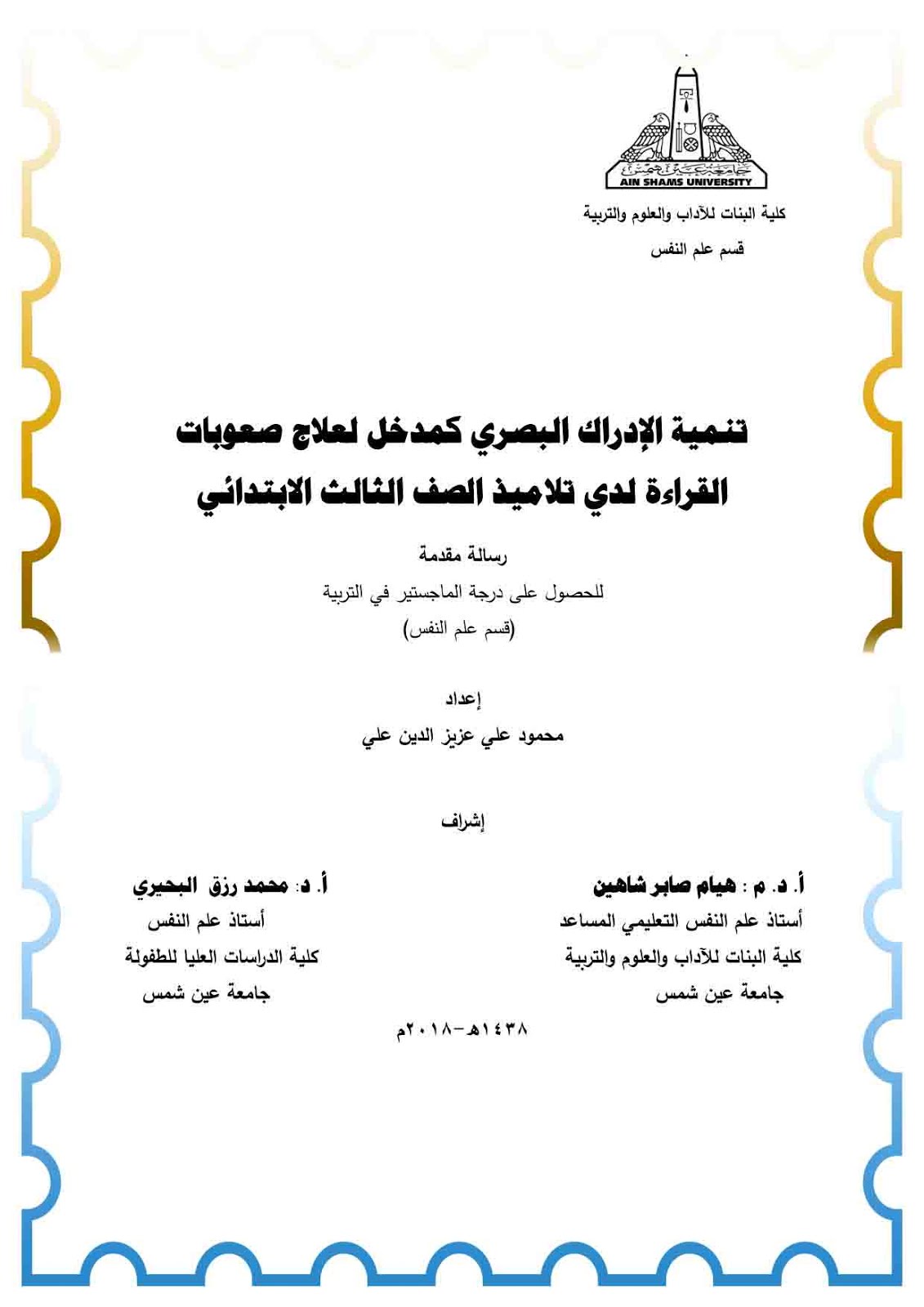 تنمية الادراك البصري كمدخل لعلاج صعوبات التعلم لدي تلاميذ الصف الثالث الابتدائي