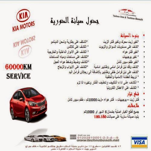 تكنوبوش جدول الصيانة الدورية لسيارات كيا