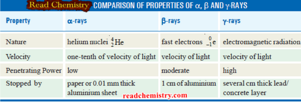 جدول مقارنة بين اشعة الفا وبيتا وجاما