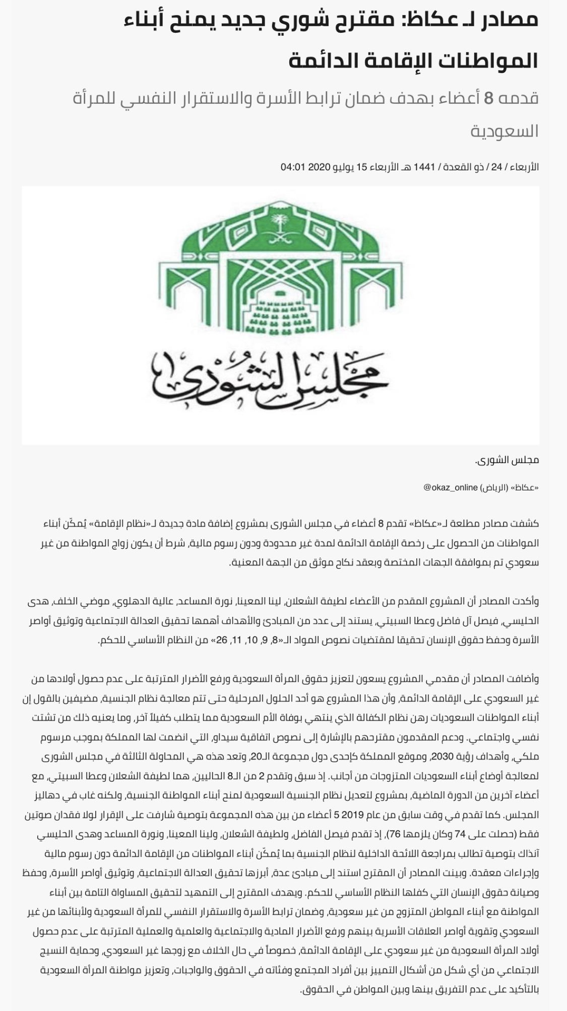وش سالفة الهاشتاق On Twitter مجلس الشورى مشروع جديد في الشورى لمنح أبناء المواطنات الإقامة الدائمة لمدة غير محدودة وبدون رسوم مالية بشرط أن يكون زواج الأم تم بموافقة الجهات المختصة Https T Co Aozmnbgcie