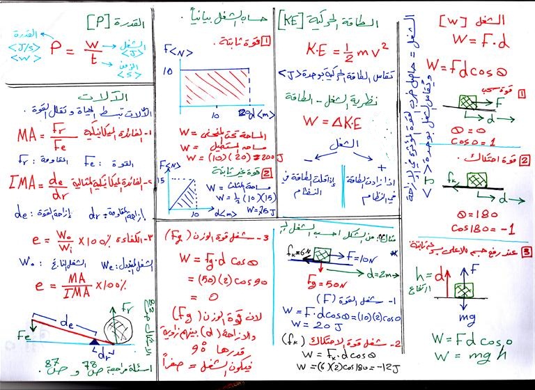 خريطة مفاهيم الشغل والطاقة والالات البسيطة